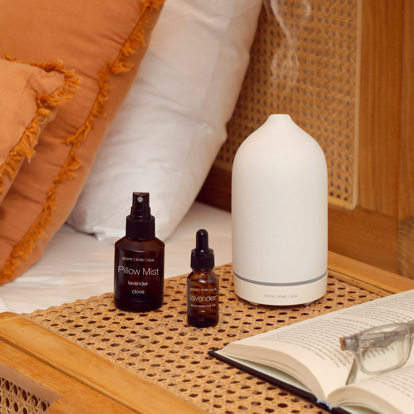 Stone Soap Spas aroma diffuser sprer eteriske oljer jevnt og skånsomt i rommet, og skaper en behagelig og balansert atmosfære. Ved hjelp av ultrasonisk teknologi fordeles duften effektivt uten bruk av varme, slik at oljenes naturlige egenskaper bevares.